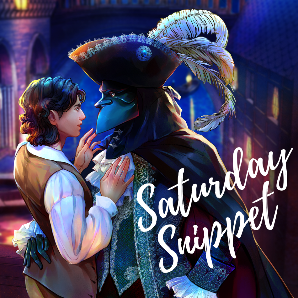 Again Enzo retreated. Again Fiore advanced. But as he swept in to fill the lack, only for Enzo to withdraw, Fiore realized it was no such thing. Enzo did not flee from him. Rather, Enzo made way for him, inviting him to occupy the space he once held but a moment ago, continually welcoming him into his arms as he’d so oft welcomed him into his body, showing Fiore over and over how eager he felt to draw him into his life. And he drew very near indeed—near enough to feel the warmth of Enzo’s heaving chest; near enough for their stockinged calves to brush against each other as they tangled and untangled like they had so oft before amidst the bed-clothes; near enough to behold the smiling gleam in his tender gaze beneath the bauta mask. They twirled across the deck in the tentative embrace demanded by the dance. The music seemed to bear them up and swirl them ‘round in its irresistible current.